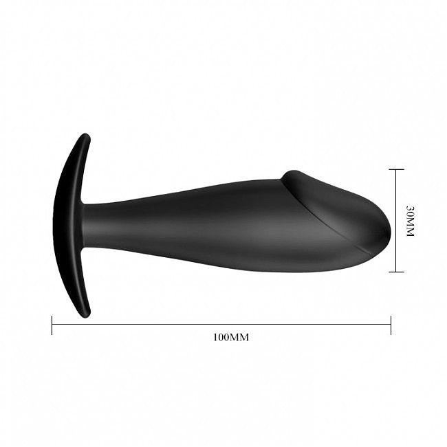 Анальная пробка черного цвета. Изготовлена из гипоаллергенного силикона с шелковистым покрытием. Выполнена в виде пениса с ярко выраженной реалистичной головкой и широким основанием для комфортного использования.