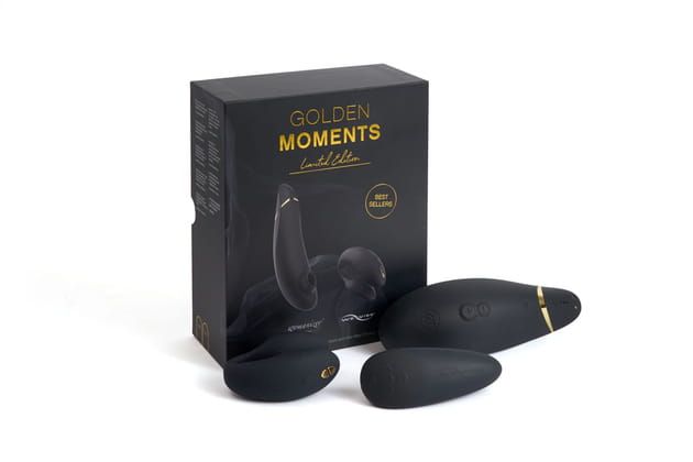Уникальный премиум набор Golden Moments Collection, который был создан, чтобы отметить союз двух брендов Womanizer и We-Vibe, объединяет в себе все возможные требования к секс-игрушкам. Это лимитированная серия, которая порадует девушек, пары, которые вынуждены практиковать отношения на расстоянии, а также людей, которые желают внести разнообразие в свою интимную жизнь. В набор входят наиболее популярные игрушки — клиторальный вакуумный стимулятор Womanizer Premium, а также вибратор для пар We-Vibe Chorus.