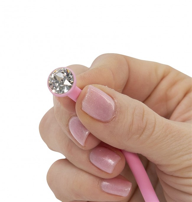 Шарики покрыты безопасным приятным силиконом: литой чулок обеспечивает простое и надежное извлечение шариков. Один шарик идеально гладкий, два других — с выпуклым рисунком, что принесет вам необычные и приятные ощущения. Двойные шарики соединены подвижно. Это полезный, приятный и красивый аксессуар, который пригодится каждой женщине. Не говоря уже о том, что сияющие кристаллы Сваровски выглядят просто потрясающе!